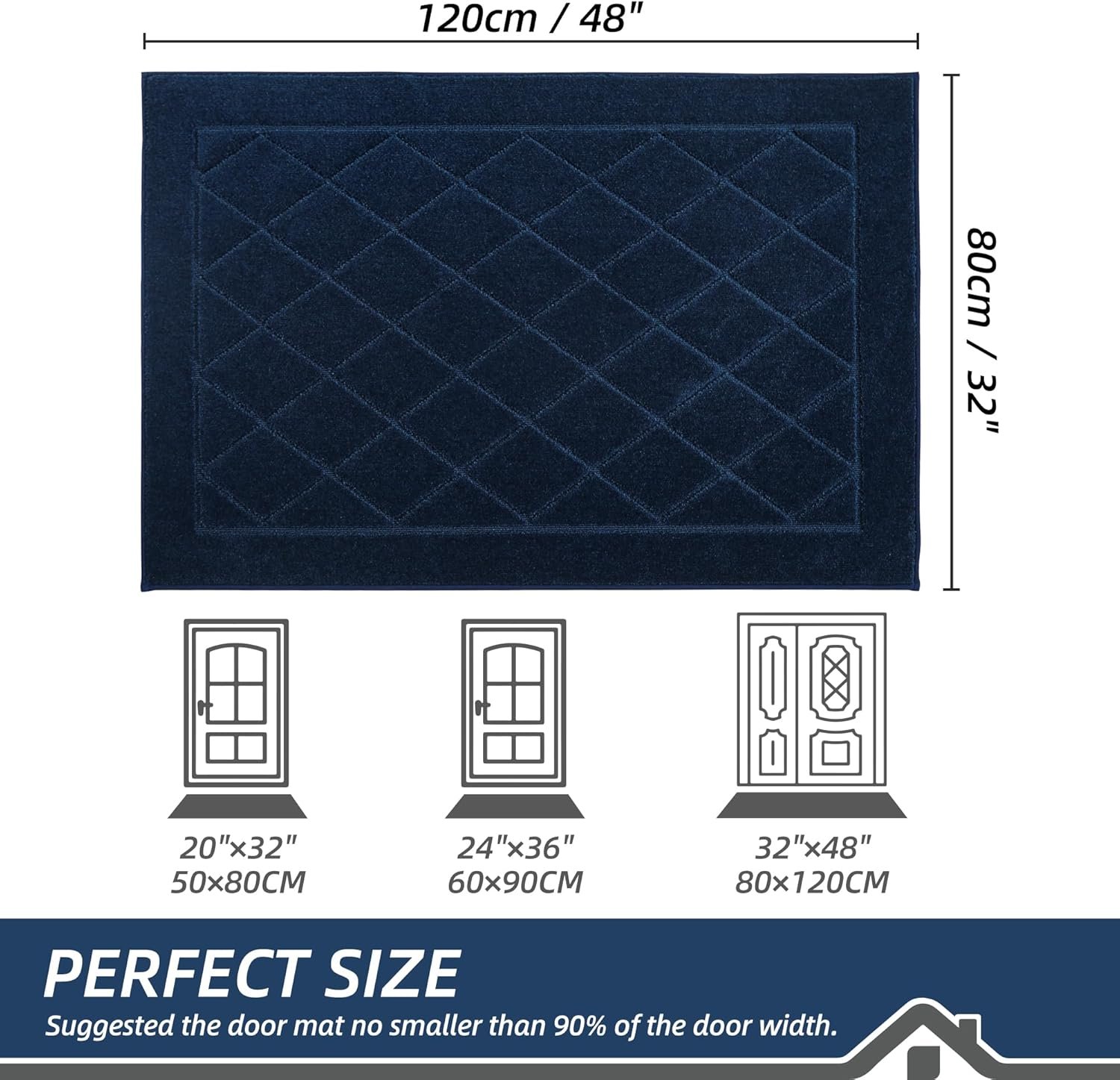 - TRAP DIRT AND MOISTURE: Door mats are made of premium Polyester and extremely dense yarns, which are extremely absorbent and stain-resistant. They absorb moisture well and quickly and also scrape dirt off the shoes, keeping the floors clean and dry. Suitable for any weather, especially rainy, snowy or muddy weather