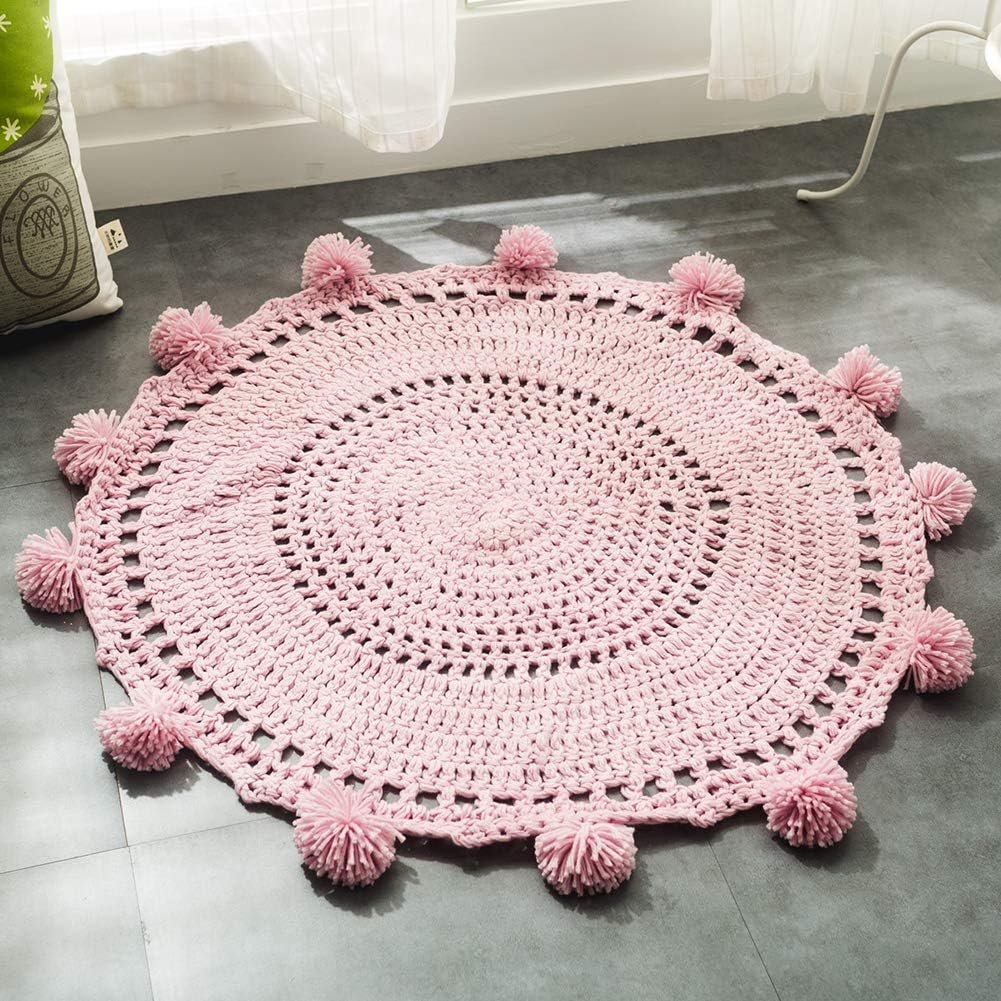 - Size:80cm x 80 cm(31.5 x 31.5 inch),round mat,Handmade Area Rugs adopts cute design, it can help you create a small space for your child, it also can be used as throw blanket, stroller throw.