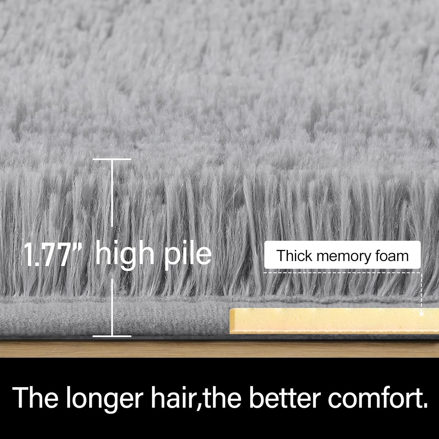 - Ultra Softness: With over 1.77-inch fluff and its natural gloss, the area rug is super soft and cozy to step on, the faux fur will enveloping your feet when you step on it, making it feeling like a hugged