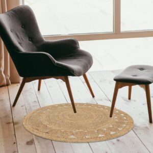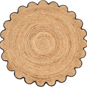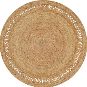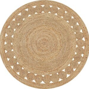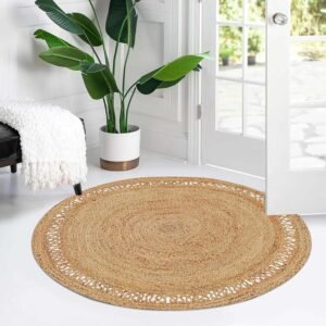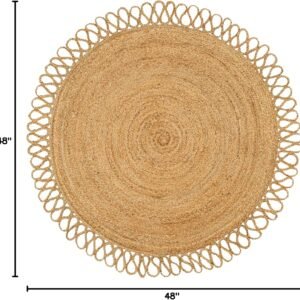 Hand Woven Farmhouse Jute Area Rug 4 Ft Round Natural Yarn, Rustic Vintage Beige Braided Reversible Rug, Eco Friendly Rugs for Bedroom, Kitchen, Living Room, Farmhouse 100% Jute Rug